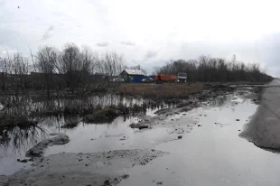 В Новокузнецком районе дорогу перелили талые воды на расстоянии 2 км