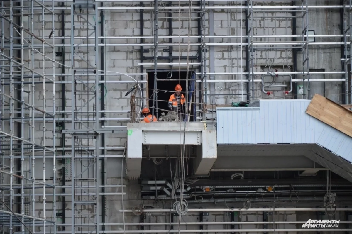 Далее строители уложат кровлю там, где здание находится под открытым небом, а когда закроют контур полностью, активнее приступят к внутренним работам. Сейчас они идут параллельно: строители утепляют стены, возводят перегородки, наносят штукатурку и прокладывают инженерные сети. В помещении уже начали устанавливать лифты.