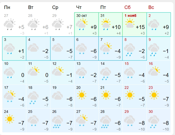 Какая погода будет в Кемерове в ноябре 2025 года?