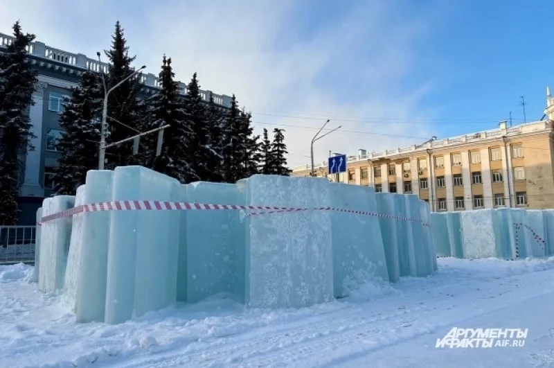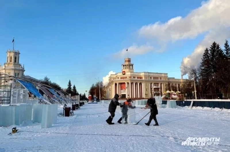 Строительство ледового городка в Кемерове на площади Советов
