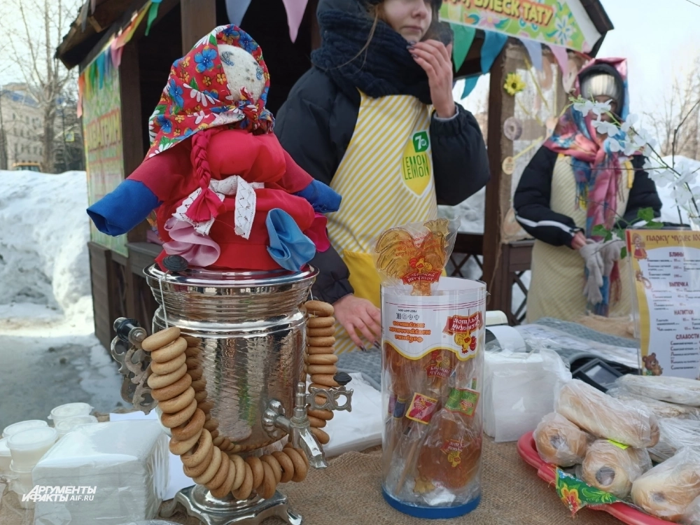Вкусные или не очень, блины в этот день продаются всюду, сытные и сладкие, с топингами и без. Здесь же своё пристанище нашли и шашлычные. Дополнительно к еде наливают бесплатный чёрный чай. В мороз — то, что надо.