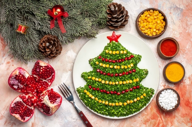 - Не превращать Новогоднюю ночь в марафон по майонезным салатам — сначала тёплое блюдо (рыба, птица, нежирное мясо), овощи, а уже потом небольшая порция оливье;