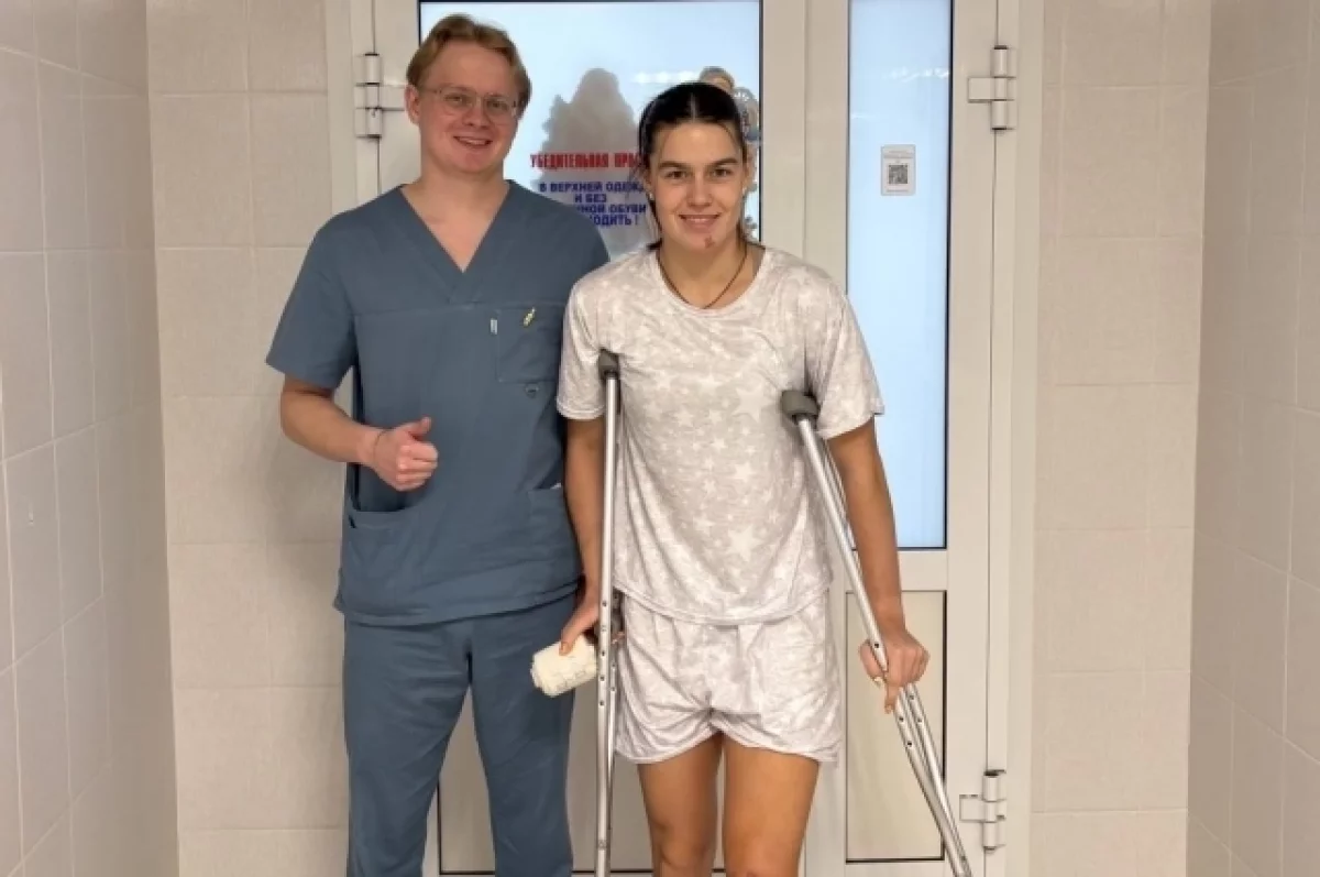 Сначала ей оказали помощь в больнице Тисуля, а затем перевезли в Кемерово для операции. Врачи установили в повреждённые кости металлические стержни, чтобы зафиксировать перелом. После операции девушка быстро пошла на поправку: уже через несколько дней она могла ходить и делать упражнения с инструктором. Сегодня её выписали, и она отправилась домой.
