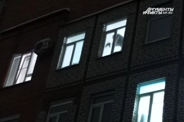 Но не только пациентки ждут выписки. В окне на четвёртом этаже замечаем, как уборщица моет окно. Утром ждут проверяющих из Москвы и Санкт-Петербурга, которые уже прибыли в Кузбасс, поэтому и убираются в столь поздний час.