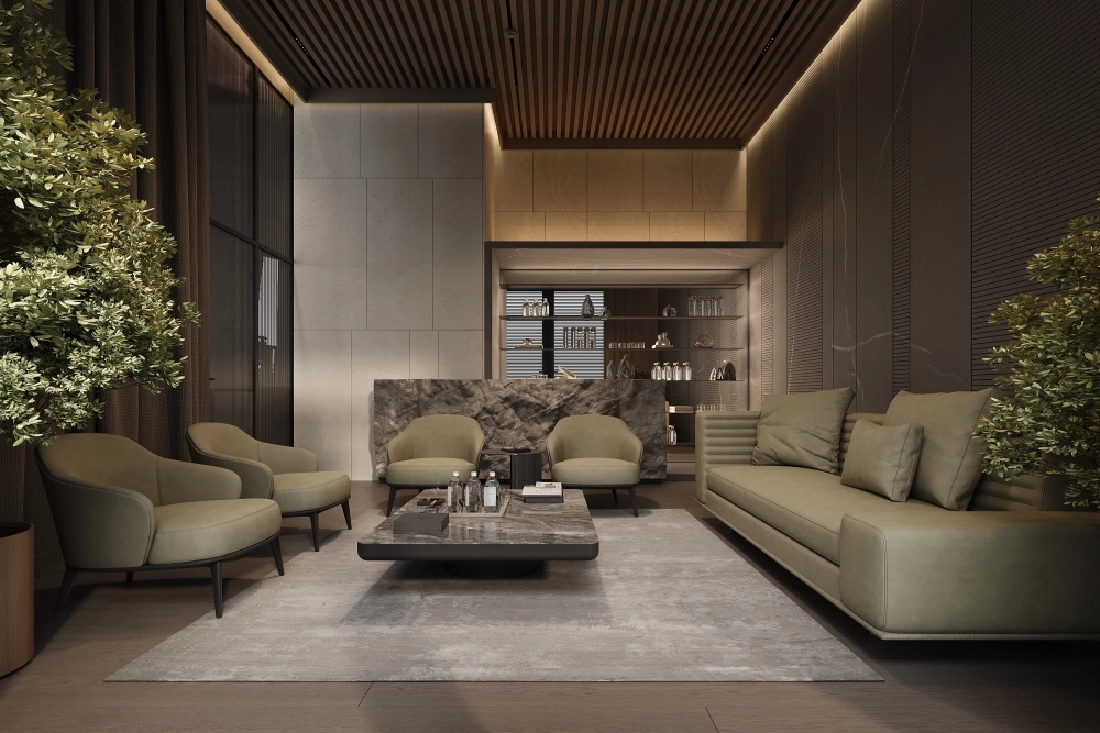 Внутреннее пространство квартир является логичным продолжением этой философии. Благодаря высоте потолков до 4,7 метра и панорамным окнам сложной формы, интерьеры наполнены светом и воздухом. Архитектура лотов предлагает редкие форматы: двухуровневые пространства со вторым светом и возможность установки дровяного камина, что превращает городскую квартиру в подобие загородной резиденции. Для тех, кто ценит время, предусмотрены варианты с авторской отделкой «под ключ».