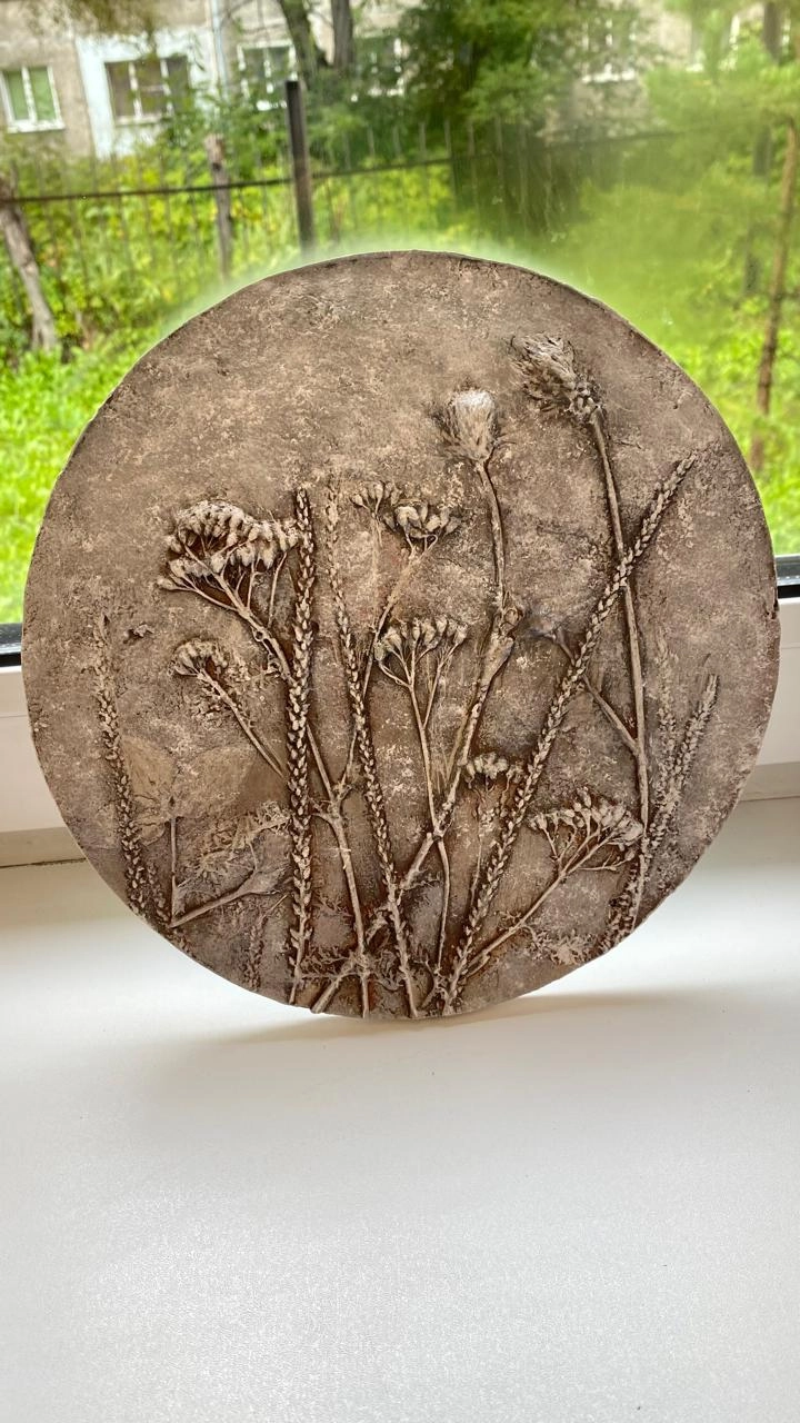 Процесс создания барельефа требует последовательности и внимания к деталям. Светлана подробно описывает технологию: начинается всё с заготовки растений, которые нужно правильно собрать и выложить в глину. Затем она составляет композицию: растения раскладывает на подготовленной поверхности.
