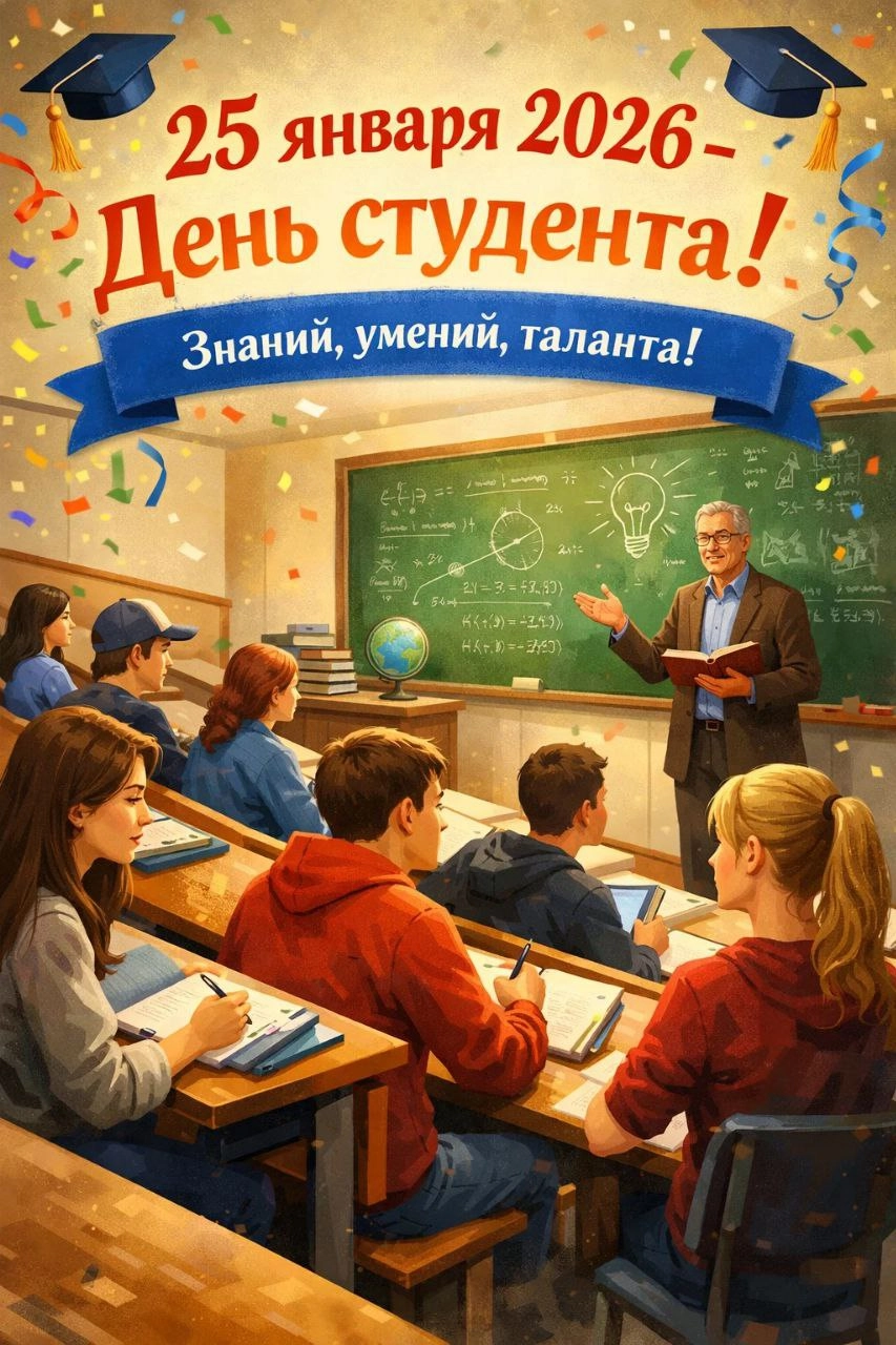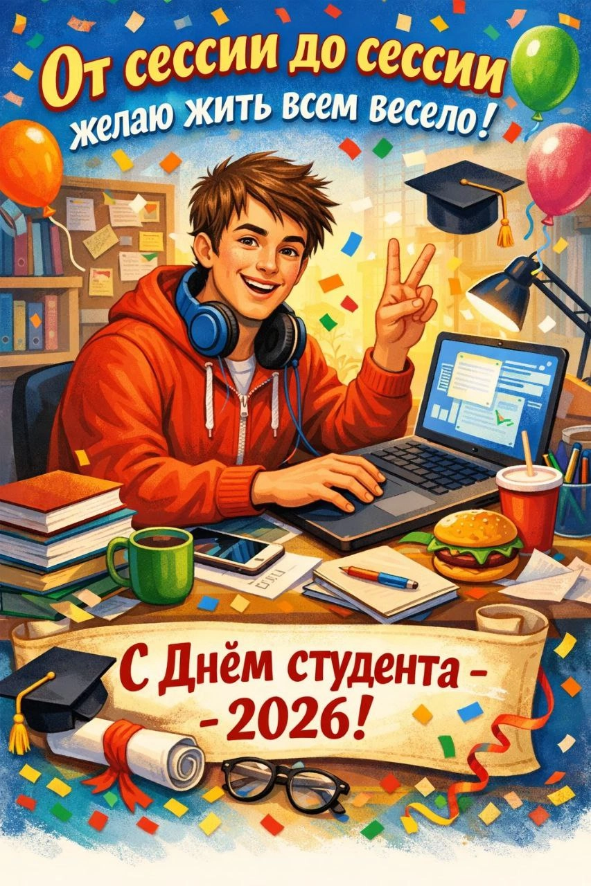 Поздравляю с праздником! Пусть твоя студенческая жизнь будет ярче, чем маркер на доске, и интереснее, чем лекция в последний день перед сессией!