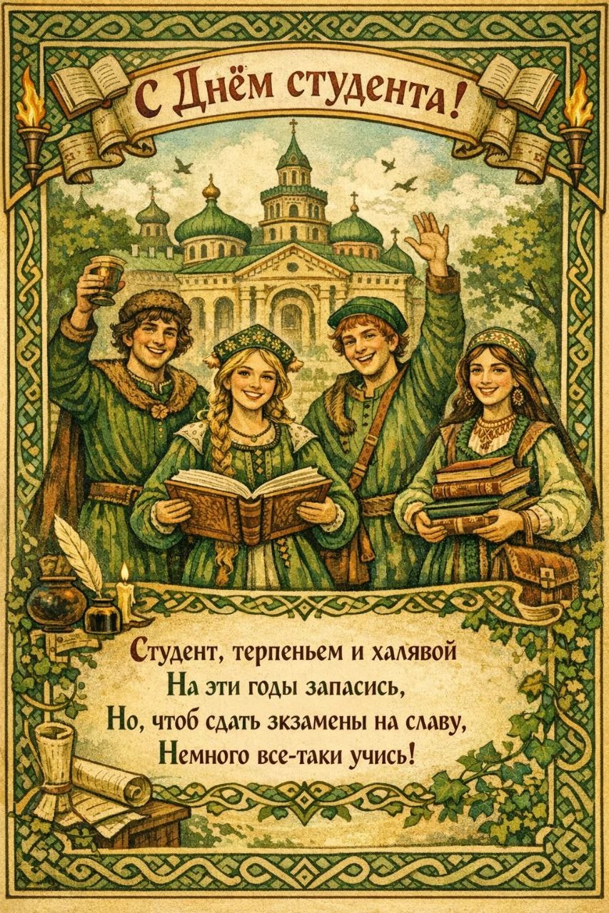 С Днём студенчества! Желаю, чтобы лабы делались сами, конспекты писались волшебной ручкой, а пары иногда пропадали (но только не важные)!