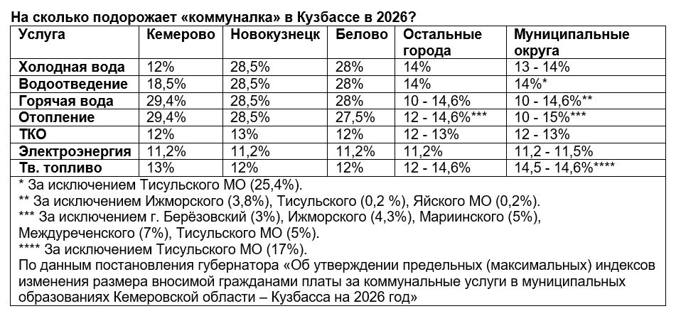 От 14 до 26%. В Кемерове, Белове и Новокузнецке ЖКУ подорожают больше всего